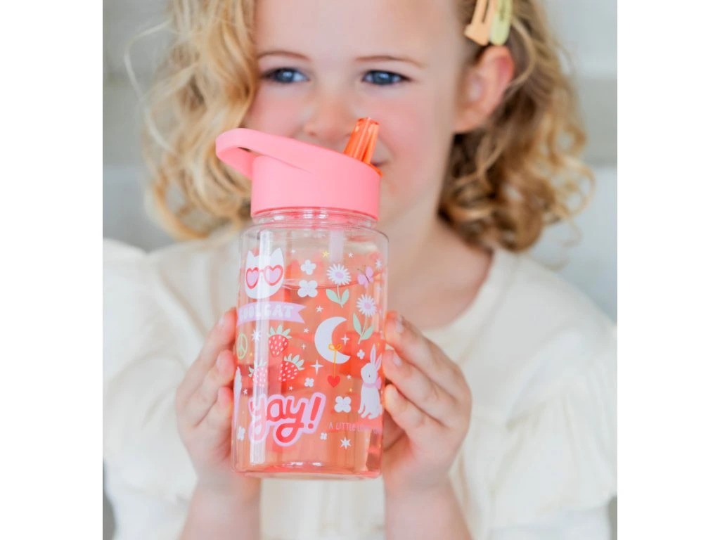 Průhledná dětská láhev na pití s veselým potiskem. Láhev je nepropustná a ideální na výlety nebo do školky. Můžete si poskládat krásnou a kompletní sadu ve stejném designu – lahev na pití, batoh a krabička na svačinu.